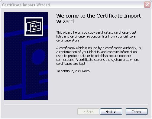 To install the certificate on Vista, make sure you are logged in using an