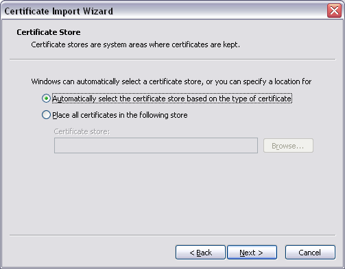 placed automatically in a store based on the certificate type; make sure you
